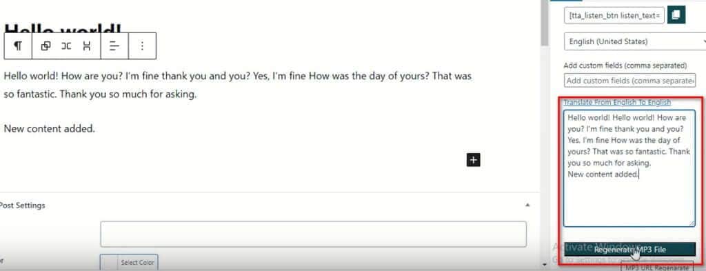 If you need to update or edit the content of a post in Text to Speech Pro, and you want the MP3 file to reflect these changes, you’ll need to manually regenerate the MP3 file. Follow the steps below to accomplish this: